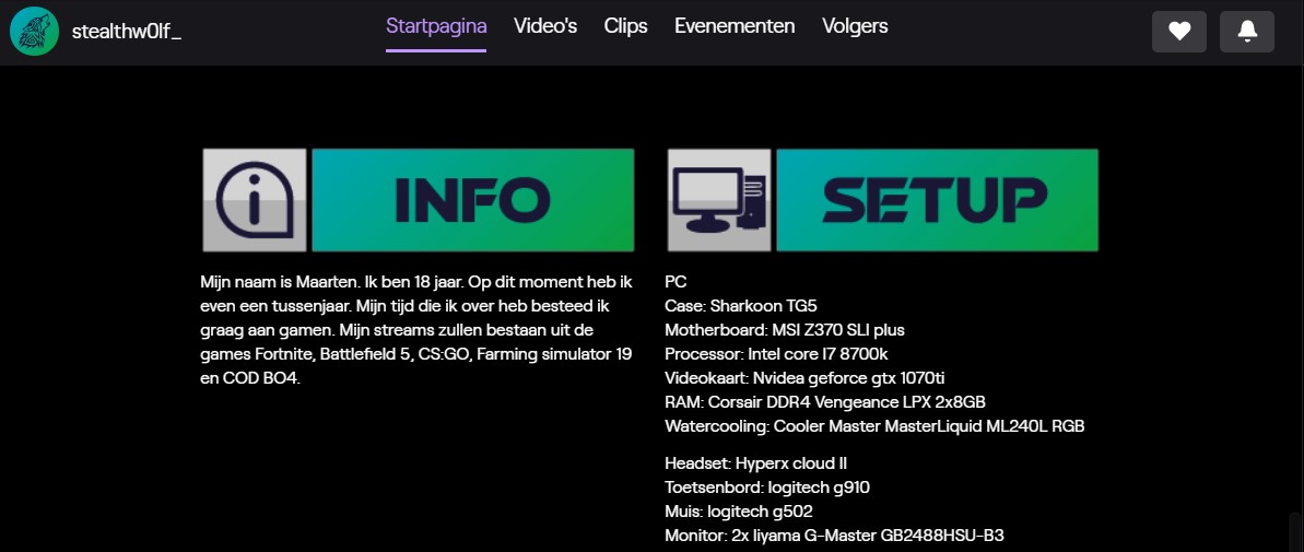 Dit is hoe de Logo & Branding eruit ziet op Twitch.tv/stealthw0lf_ en Twitter.com/Stealthwolf_.