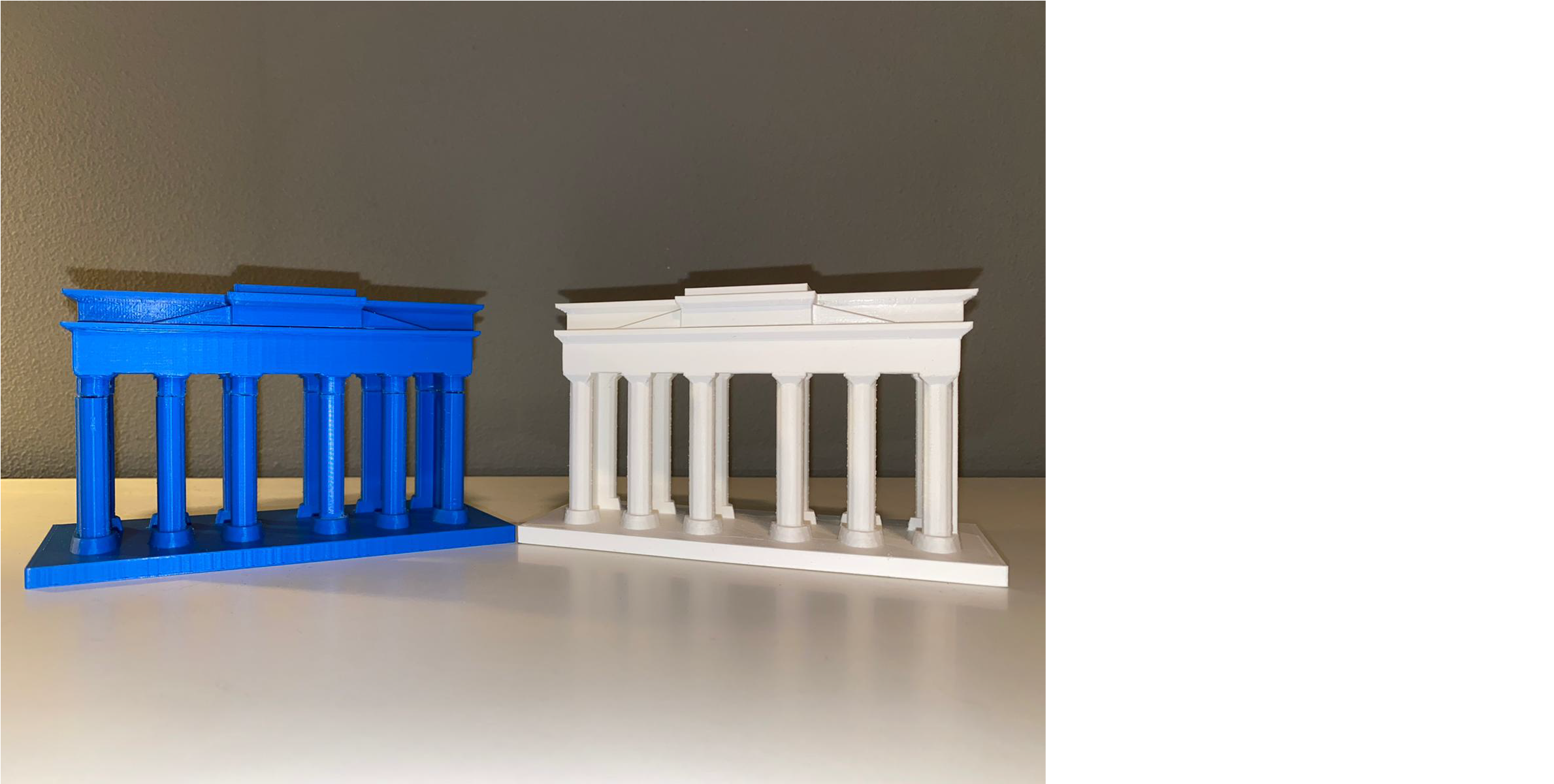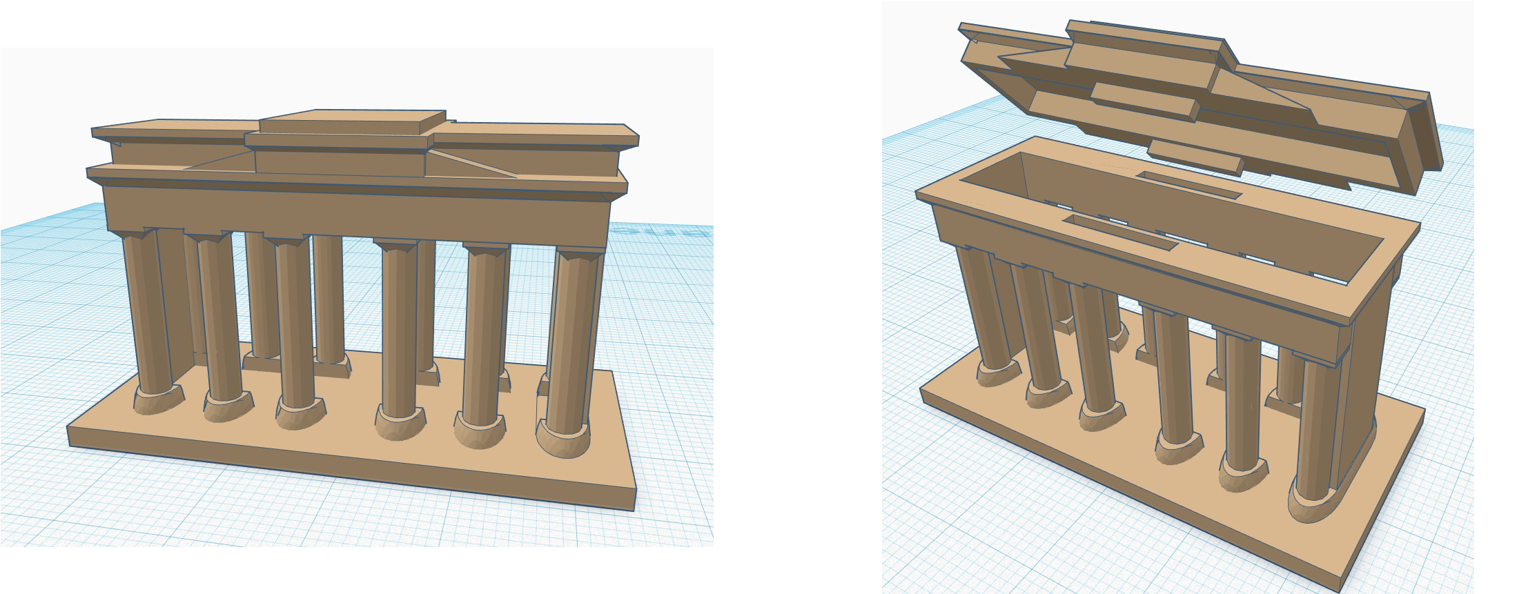 Ons idee voor het kwartetspel-doosje was om de brandenburger Tor uit Berlijn te maken met een 3D-printer. We vonden al snel dit ontwerp online.