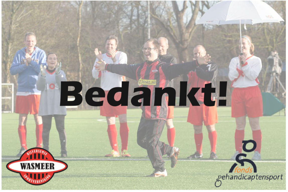 Ik heb een bedankkaartje gemaakt voor een wedstrijd die plaatsvond tussen NOS-presentatoren en het G-elftal van HSV Wasmeer uit Hilversum. Deze wedstrijd vond plaats als inzamelingsactie voor het Gehandicaptensportfonds.
