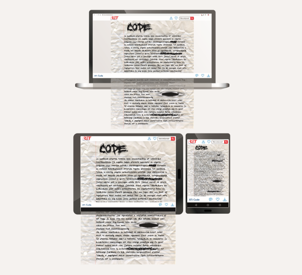 Ik heb een responsive verhalenwebsite gemaakt waarbij je een verhaal kan favorieten zodat deze in je favorietenlijst komt. Ook heb ik gemaakt dat je onder een verhaal een reactie achter kunt laten. Het plaatje hieronder laat zien hoe responsive een verhaal eruit op de verhalenwebsite.