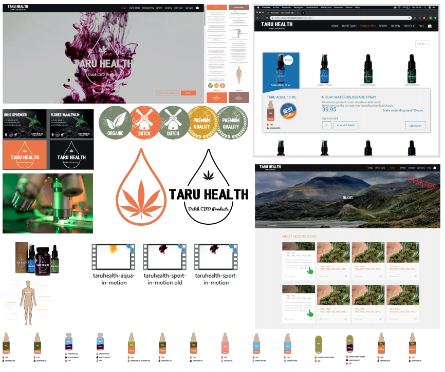 Voor Taruhealth hebben ik en Jesse gewerkt aan de verbetering van de website, we hebben gewerkt aan de webwinkel, de webdesign voor een blogpagina en promomateriaal zoals een bijsluiter, businesscards en folder. Ook heb ik iconen verbeterd, logo’s gemaakt, een favicon gemaakt voor de website, een filmpje voor op de banner bewerkt, illustraties van flesjes en capsules gemaakt en nog veel meer