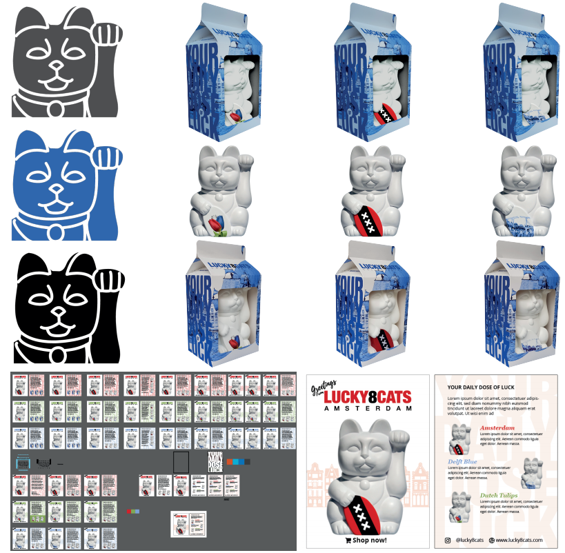 Voor Lucky8Cats heb ik een favicon gemaakt voor de website, enkele foto’s gephotoshopped, productfoto’s gemaakt en een folder gemaakt.