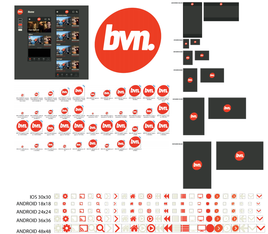 BVN krijgt een gloednieuwe app, ik heb hiervoor alle iconen gemaakt voor in de app, en alle App-icons die je ziet op je homescreen. Ook heb ik alle Launch- en splashscreens gemaakt.