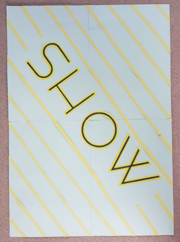 De tweede opdracht die we kregen was de volgende opdracht: '1 poster op A2 formaat, handmatig uitgevoerd in een techniek naar keuze, op (gekleurd) papier'. Ik heb een poster gemaakt met het lettertype van Hotel en Theater Gooiland in Hilversum. Wat de poster moet voorstellen? Dat leg ik je even uit! De groene kleur is Gooiland-groen, die veel in het hotel en op de website wordt gebruikt. De gele strepen moeten spotlights voorstellen die je in een theater kan vinden. De gehele rand om de letters heen moeten letters voorstellen die een gloed achter zich hebben als het donker is (doormiddel van lampjes).